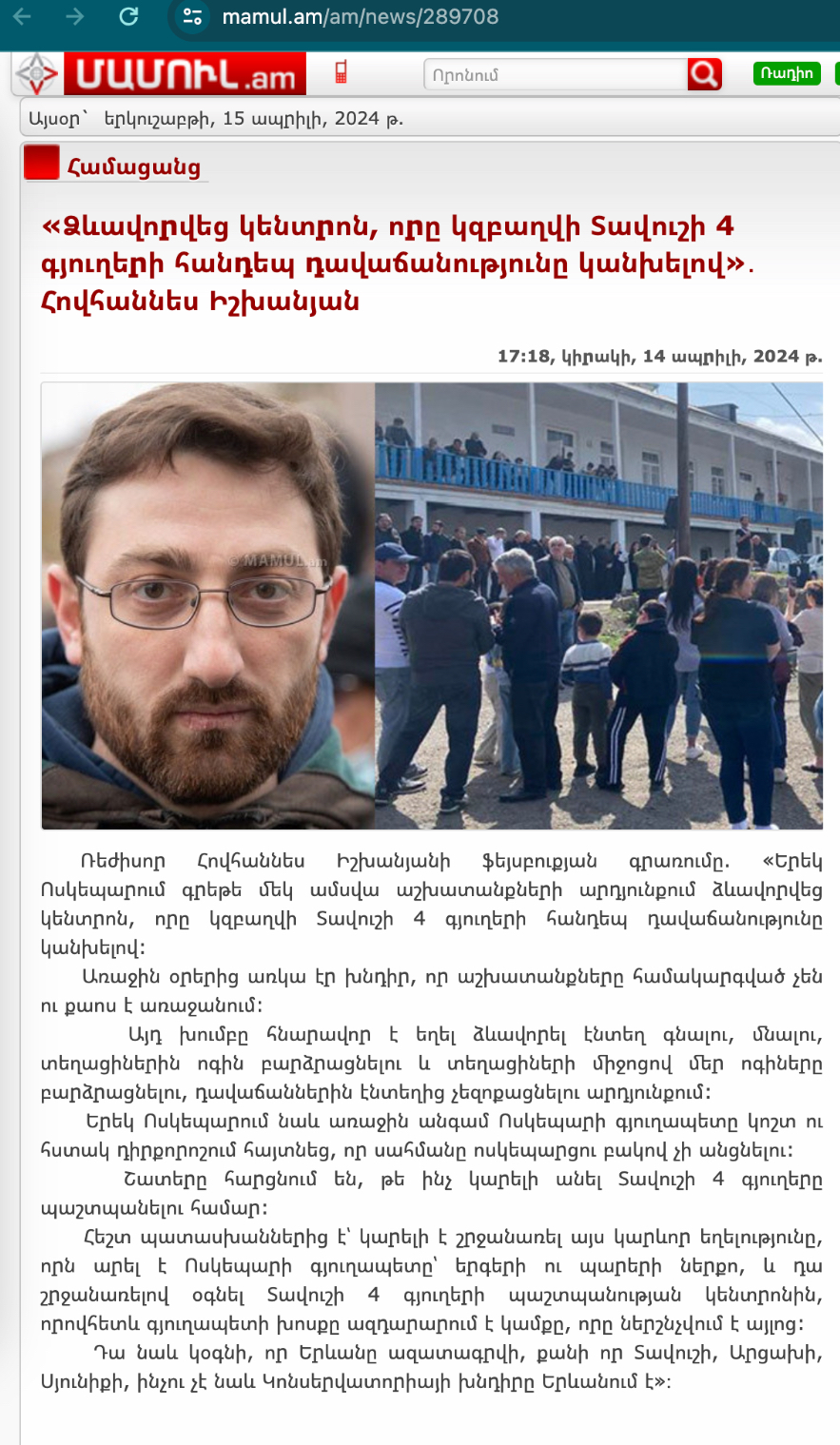 Սա է մեր դիրքորոշումը և ցանկացած այլ տիպի մեկնաբանություն, եզրահանգում ընդունելի չէ մեզ համար։ Միայն մենք իրավունք ունենք հանդես գալու գյուղի անունից։
