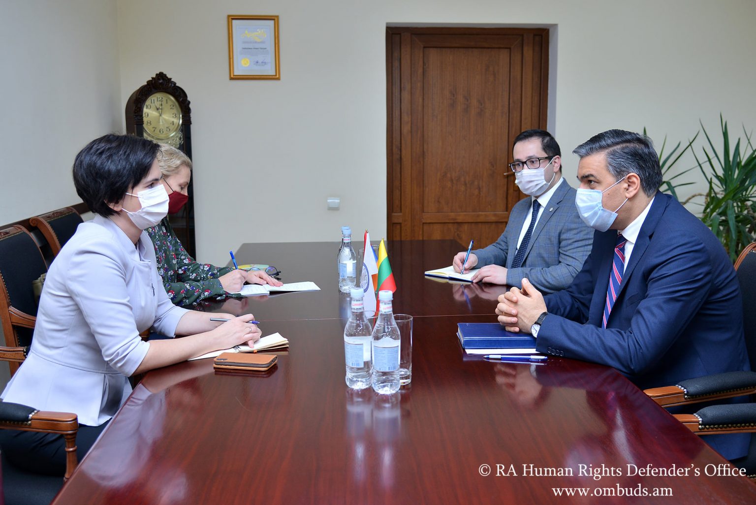 Մարդու իրավունքների պաշտպան Արման Թաթոյանն այսօր ընդունել է Հայաստանում Լիտվայի արտակարգ և լիազոր դեսպան Ինգա Ստանիտե-Տոլոչկիենեին։