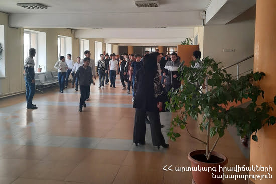 Ստուգվել են դպրոցում առկա պաշտպանական կառույցների, օդային տագնապ ազդանշանից հետո պատսպարման կազմակերպման, ինչպես նաև էներգամատակարարման, ջրամատակարարման, կապի և ազդարարման համակարգերի աշխատանքը: