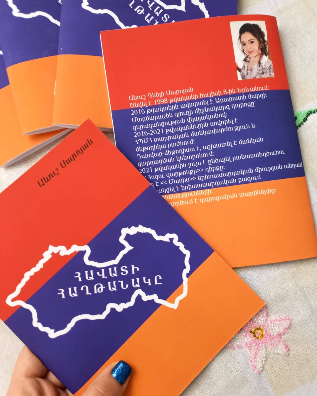 – Բավականին բարդ է եղել ստեղծագործել դեռ մանկուց և տպագրել շատ ուշ։ Վերջապես 2021 թվականը բեղուն տարի եղավ ինձ համար։ Նախ աշխատանքի անցա Մանկան զարգացման կենտրոնում` վերջին ուսանողական պրակտիկայիցս լավ արդյունքներ գրանցած, ապա հուլիս ամսին ստացա տարրական մանկավարժի որակավորմամբ դիպլոմ, իսկ արդեն սեպտեմբեր ամսին հորաքրոջս՝ Թերեզայի, և իր ամուսնու՝ Անդրանիկի, օգնությամբ տպագրեցի առաջին գիրքս` «Հոգու զարթոնքը»։ Իմ շնորհակալությունն եմ ուզում հայտնել ՀՀ մշակույթի վաստակավոր գործիչ Սամվել Խալաթյանին, ով սատար կանգնեց իմ առաջին գրքի հրատարակմանը և օգնեց մտնել ինձ համար չակերտավոր «Ստեղծագործողների լայն աշխարհ»։