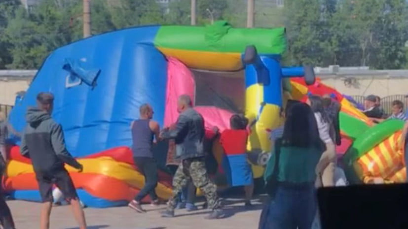 Ռուսաստանի Բառնաուլ քաղաքում տհաճ միջադեպ է տեղի ունեցել։ Մանկական բատուտը ուժեղ քամու հետևանքով օդ է բարձրացել, որի արդյունքում դրա ցատկոտող 2 երեխաներ ընկել են տրամվայի գծերի վրա։