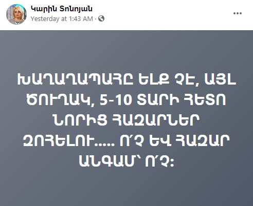 Խաղաղապահը ելք չէ, այլ ծուղակ․ Կարին Տոնոյան