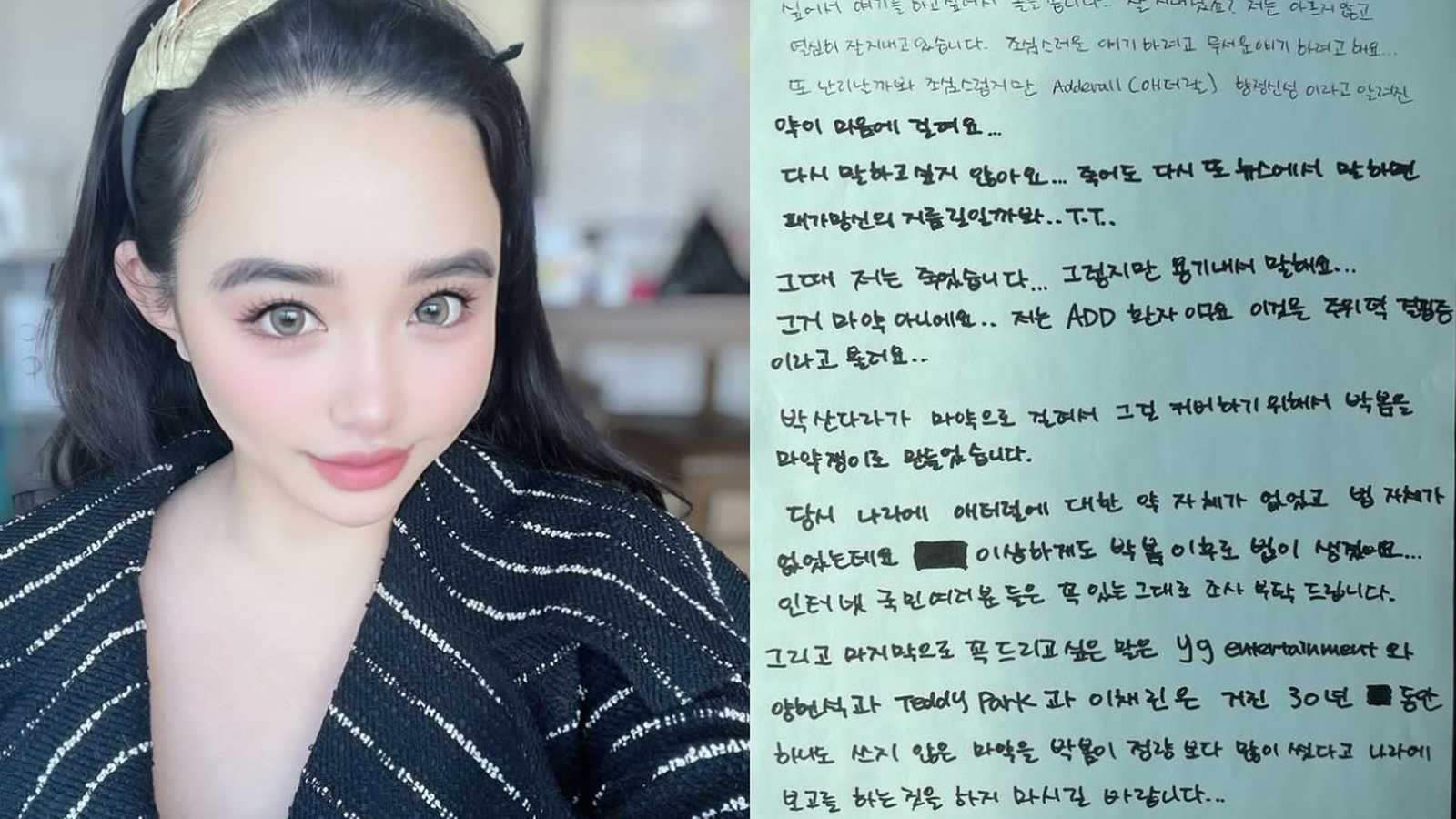 The singer also criticized the lack of a specific medication system or law regarding Adderall in South Korea at the time of her 2010 incident, noting that a law was ‘strangely’ created afterward. She appealed to the public to ‘investigate the facts’ and made a direct plea to YG Entertainment founder Yang Hyun-suk, music producer Teddy Park, and 2NE1’s former leader CL, asking them not to report her to authorities again for alleged drug use. Park Bom concluded her emotional letter by stating it felt like her ‘soul is crying,’ expressing gratitude to her readers.