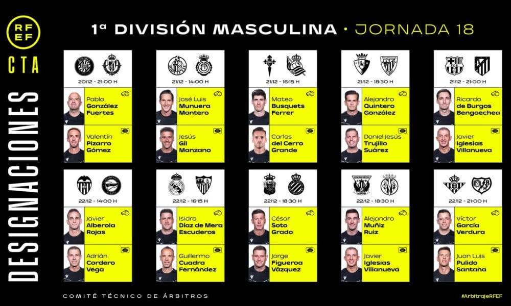 Ricardo de Burgos Bengoetxea has been assigned as the referee for one of the most anticipated matches of La Liga’s matchday 18, the Barcelona-Atletico Madrid showdown, scheduled for Saturday, December 22, at Montjuic. Assisting him in the VAR room will be Galician referee Javier Iglesias Villanueva.