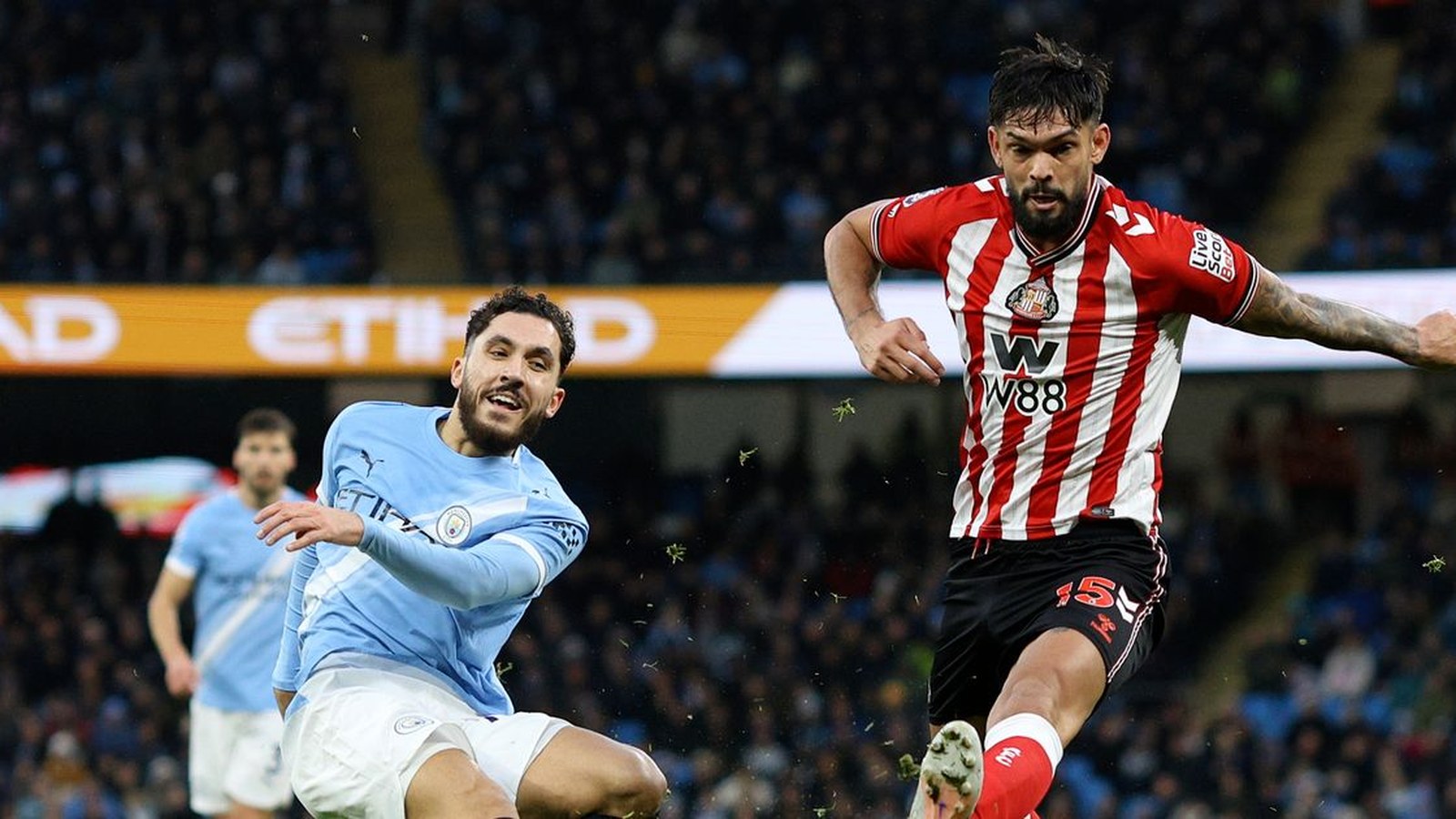 Rúben Dias scored in Manchester City’s 3-0 win over Sunderland, helping close the gap to Arsenal and providing a boost ahead of a crucial Champions League clash with Real Madrid, despite injury concerns for key players.