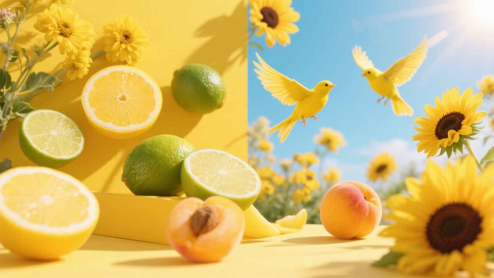 Limes, yellows, and apricots activate a tangy, sparkling energy—perfect for scenes that feel alive.