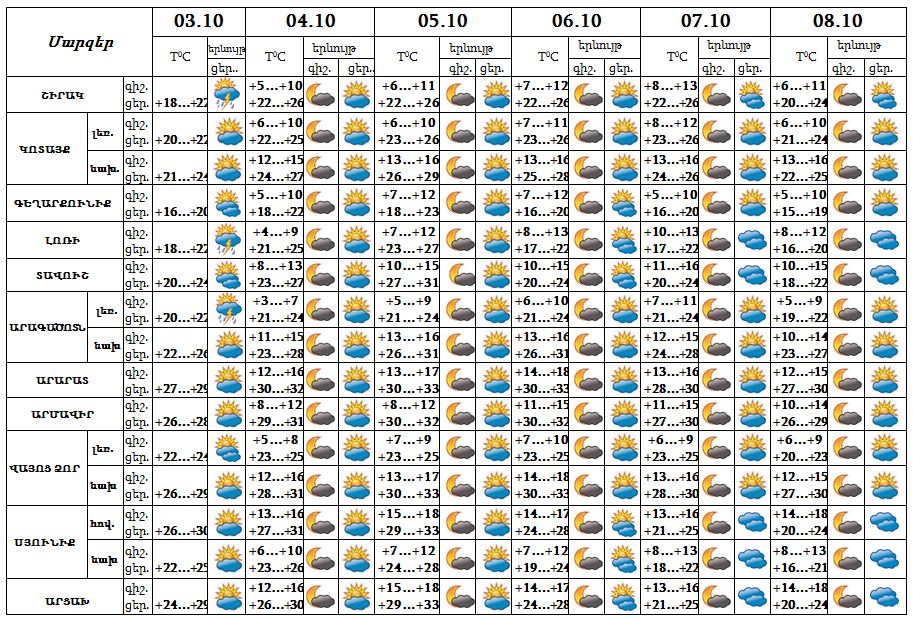 Օդի ջերմաստիճանը հոկտեմբերի 4-5-ն աստիճանաբար կբարձրանա 2-4 աստիճանով: