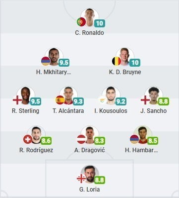 SofaScore սպորտային հարթակի կողմից կազմվել է Եվրո-2020-ի ընտրական փուլի վերջին երկու տուրերի խորհրդանշական հավաքականը: