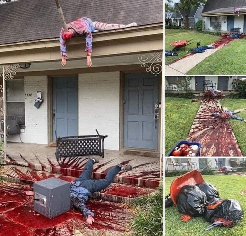 Առաջին նկարում կադրեր են հելոուինյան տեսարանից, երբ ԱՄՆ-ում մի նկարիչ որոշել է տոնի առթիվ բակը զարդարել: Տեսարանն այնքան բնական է եղել, որ հարևանները մտածել են՝ իրական սպանություն է եղել ու մի քանիսը միաժամանակ զանգել են ոստիկանություն, իսկ լրատվամիջոցներն այն բլյուր արած են տարածել (29.10.2020թ.)։