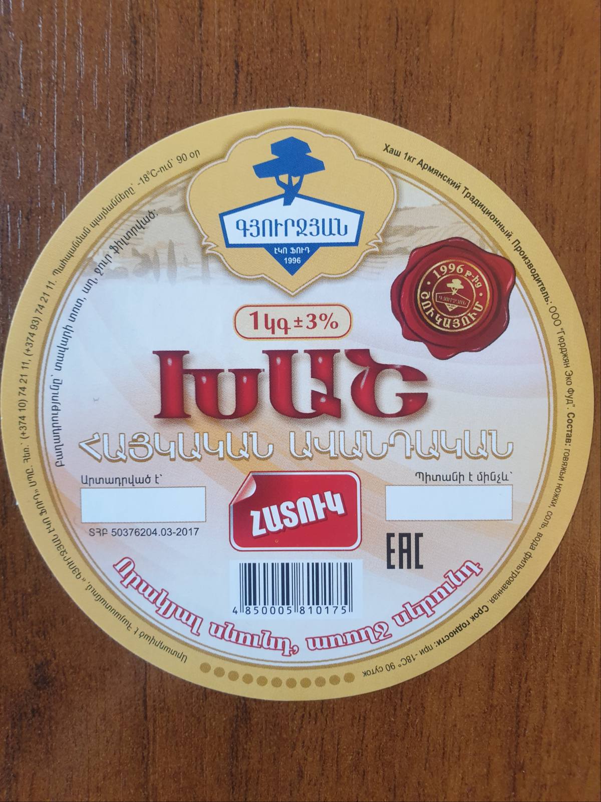 Փորձարկման արդյունքներով պարզվել է, որ «Խաշ հայկական ավանդական» արտադրատեսակի նմուշը ՄԱՖԱՄ (մեզոֆիլ աերոբ ֆակուլտատիվ անաերոբ մանրէներ) ցուցանիշով չի համապատասխանել «Մսի և մսամթերքի անվտանգության մասին» Մաքսային միության տեխնիկական կանոնակարգի պահանջներին։