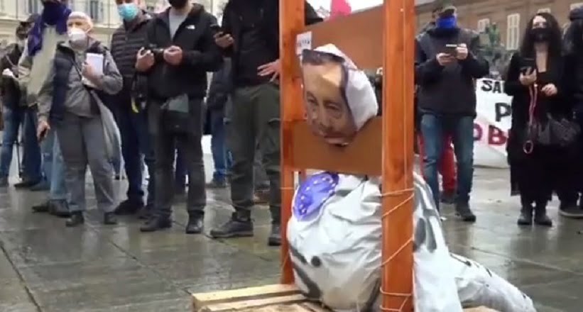 Հռոմի բնակիչները գիլյոտինի վրա «մահապատժի» են ենթարկել Իտալիայի վարչապետի խրտվիլակը: Իտալացիների այս քայլի պատճառը կապվում է Դրագիի կաբինետի քաղաքականության պատճառով առաջացած բարձր գների և գործազրկության հետ։