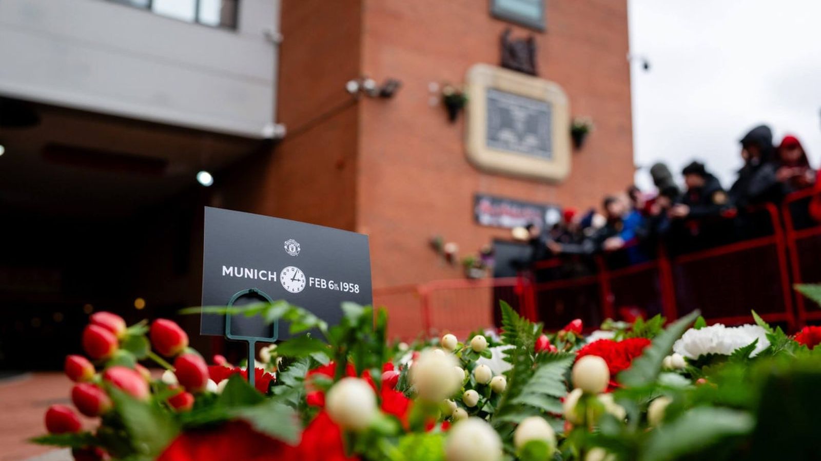Փետրվարի 6-ին «Օլդ Թրաֆորդում» տեղի ունեցավ հիշատակի հանդիսավոր արարողություն, որին մասնակցեցին մինչև 3000 երկրպագուներ։ Արարողությունը վարեց հոգևորական Ջոն Բոյերսը, ներառելով հիշատակի ցուցակ, ընթերցումներ և բանաստեղծություններ լրագրող Էնդի Միթենից, «Մանչեսթեր Յունայթեդ» հիմնադրամի մասնակիցներից և Ակադեմիայի թիմի ներկայացուցիչներից։ Ակումբի լեգենդ Սեմմի Մաքիլրոյը նույնպես մասնակցեց, իսկ ակումբի բարձրաստիճան պաշտոնյաները ծաղկեպսակներ դրեցին Արևելյան տրիբունայում գտնվող Մյունխենի խորհրդանշական ժամացույցի տակ։ Ինչպես հաղորդում է «The Daily Mail»-ը, ներկա էին նաև ժամանակավոր մարզիչ Մայքլ Քերիքը և կիսապաշտպան Բրունո Ֆերնանդեշը, ինչպես նաև Քերիքի օգնականները և ակումբի առաջատար ղեկավարները։