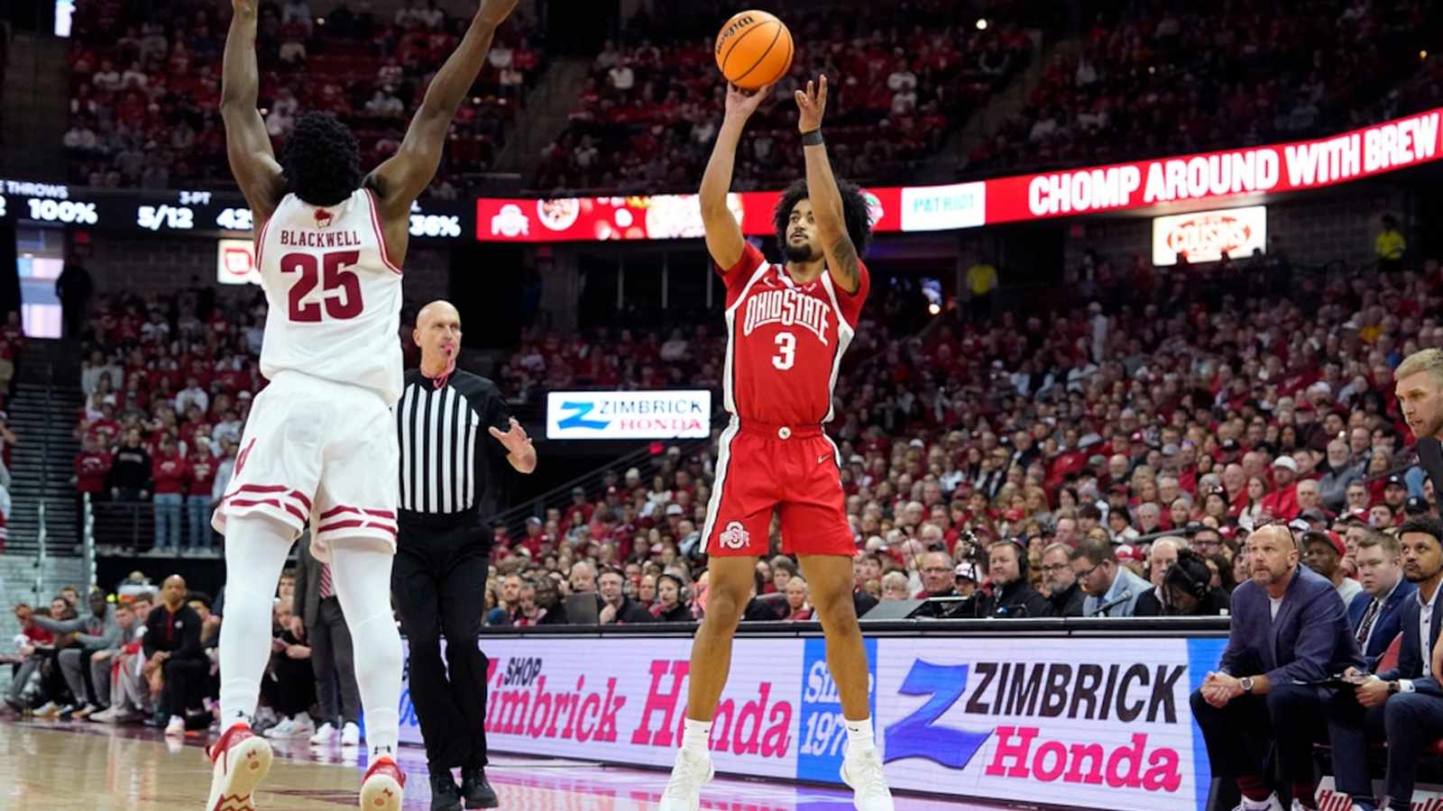 ԿՈԼՈՒՄԲՈՒՍ (Ազատ TV) – Թիվ 2 Միչիգան Վուլվերինսը ներկայումս 10 միավորով առաջատար է Օհայո Սթեյթ Բաքայսի դեմ իրենց Big Ten տղամարդկանց քոլեջի բասկետբոլի մրցակցային խաղի երկրորդ կեսում, որն այսօր ընթանում է Կոլումբուսի Value City Arena-ում, Օհայո: Այս առանցքային խաղում Միչիգանը, որը ազգային տիտղոսի հավակնորդ է, դիմակայում է Օհայո Սթեյթի թիմին, որը հուսահատորեն ձգտում է հաղթանակի՝ ամրապնդելու իր NCAA մրցաշարի ռեզյումեն։