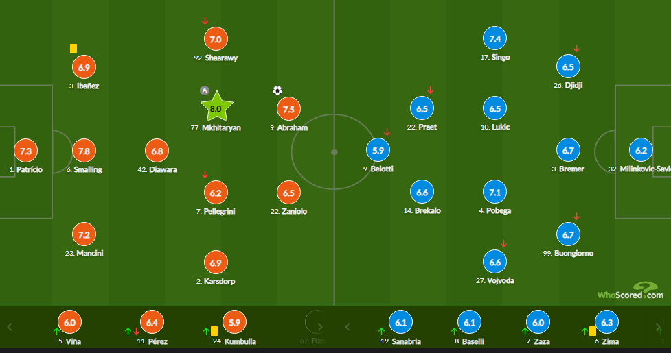 Հանդիպմանը մասնակցեց նաև հայազգի կիսապաշտպան Հենրիխ Մխիթարյանը, ով աչքի ընկավ արդյունավետ գործողությամբ։ 32-րդ րոպեին հենց նրա փոխանցումից հետո Աբրահամը խփեց «Ռոմայի» հաղթական գնդակը։