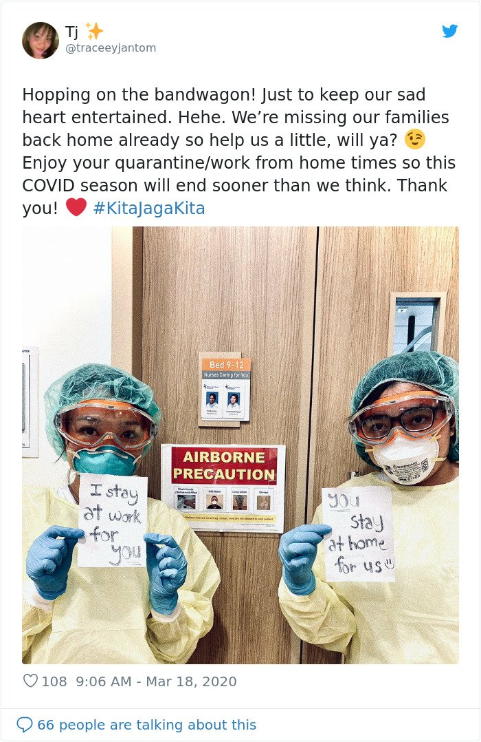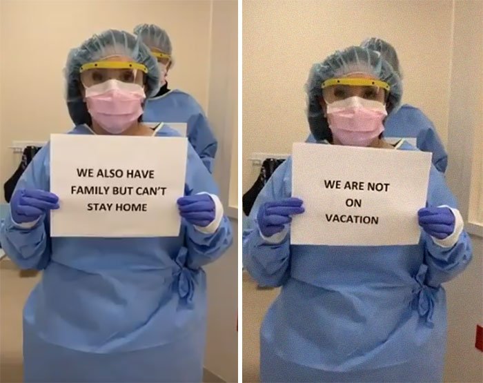 Ազատ TV մեդիանախաձեռնությունը հավաքագրել է բժիշկների կոչը՝ «Մենք մնացինք աշխատելու հանուն ձեզ, դուք մնացեք տանը հանուն մեզ» կոչը, ինչպես նաև դիմակներից ու աշխատանքից չարչարված, բայց օրհնված բժիշկների նկարները, որոնք առկա են համացանցում և սիրով ներկայացնում ենք ձեզ։ Այս արշավին նաև միացել էին հայ բժիշկները, որոնց նկարները նույնպես կգտնեք հոդվածում։