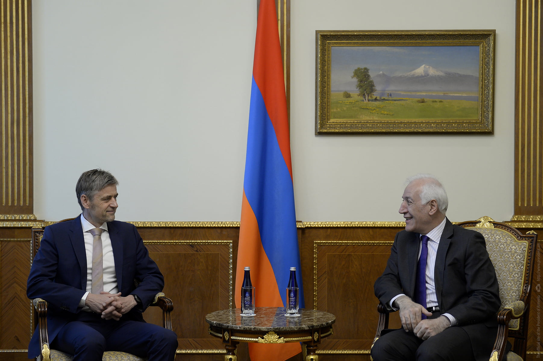 ՀՀ նախագահի աշխատակազմը հայտնել է, որ Հանրապետության նախագահ Վահագն Խաչատուրյանն այսօր ընդունել է «Կոնրադ Ադենաուեր» hիմնադրամի Եվրոպայի և Հյուսիսային Ամերիկայի եվրոպական և միջազգային համագործակցության բաժնի ղեկավար Լարս Հենսելին, հիմնադրամի «Քաղաքական երկխոսություն. Հարավային Կովկաս» տարածաշրջանային ծրագրի ղեկավար Թոմաս Շրապելին: