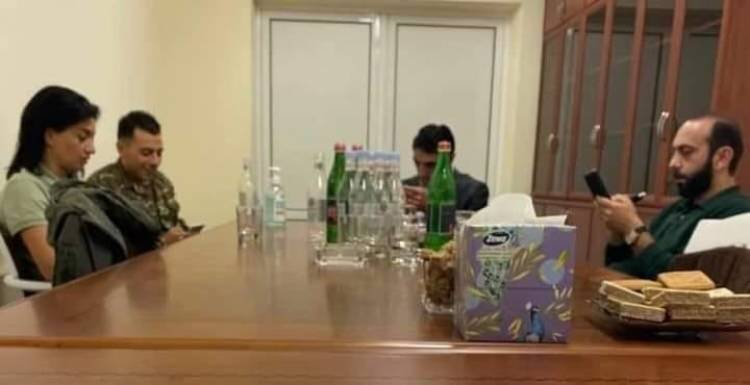 Նկարն արվել է հոկտեմբերի 3-4-ին, երբ ԱԺ նախագահը պատերազմից հետո առաջին անգամ մեկնել էր Ստեփանակերտ, երբ դեռ այնտեղ էին Աննա Հակոբյանը, Աշոտ Փաշինյանը և, երբ դեռ Աշոտը, առաջնագիծ չէր մեկնել»։