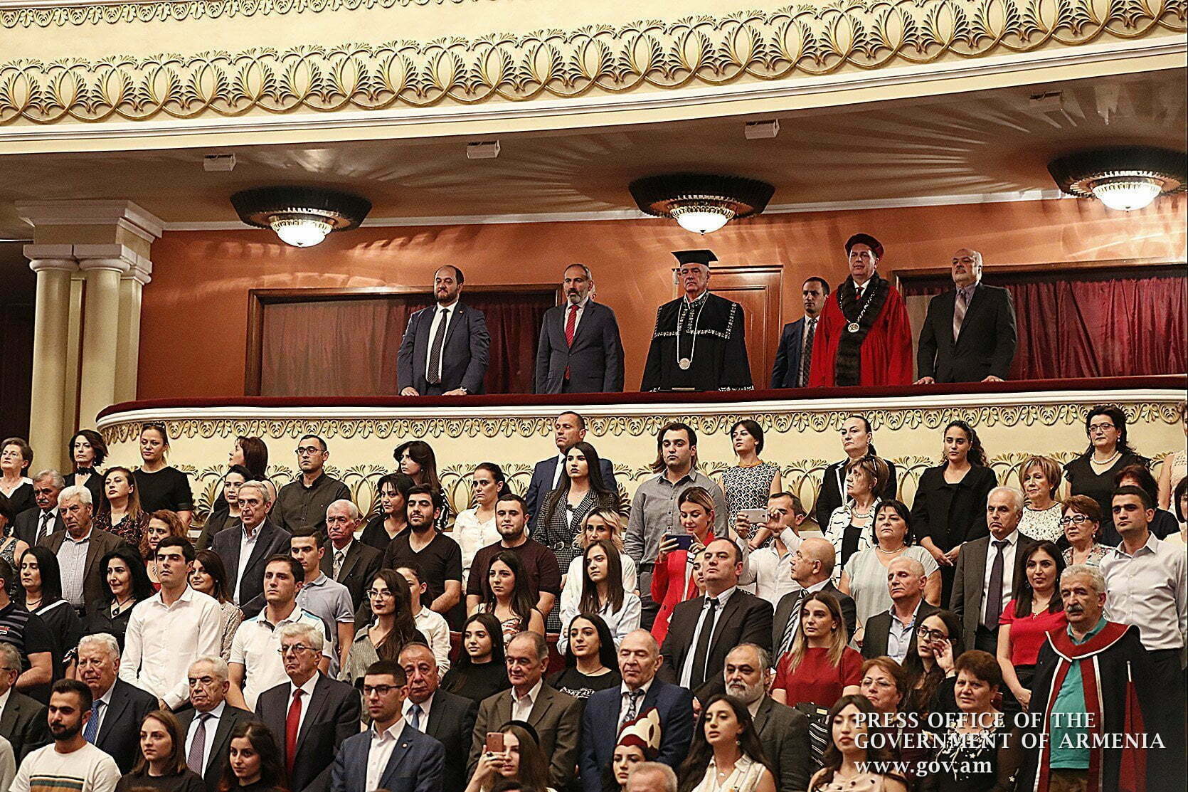 Վարչապետ Նիկոլ Փաշինյանը Երևանի Ալեքսանդր Սպենդիարյանի անվան օպերայի և բալետի ազգային ակադեմիական թատրոնում ներկա է գտնվել Երևանի պետական համալսարանի 100-րդ տարեդարձին նվիրված հանդիսավոր միջոցառմանը: