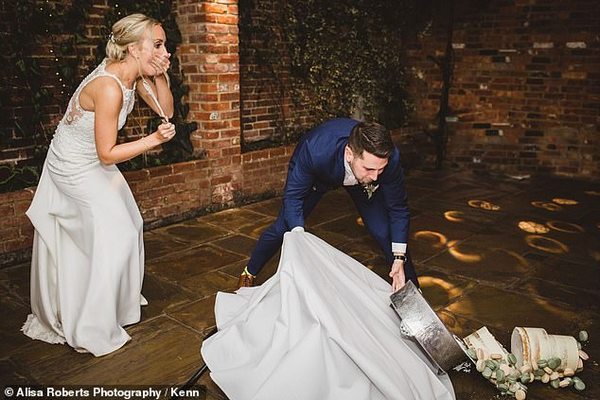 Daily Mail-ը տեղեկացնում է, որ Քլոեն և Ահարոնը փորձել են կտրել շքեղ, թխվածքաբլիթներով զարդարված, եռաստիճան հարսանեկան տորթը, սակայն չեն հասցրել: հարսնացուի և փեսայի սարսափած հայացքների ներքո սեղանի ոտքերը ծալվել են և գրեթե 550 դոլար արժողությամբ տորթը հայտնվել է հատակին՝ բաժանվելով մասերի: Չնայած նորապսակները հուսահատորեն փորձում էին բռնել սեղանի եզրից և կանխել տորթի թռչելը: