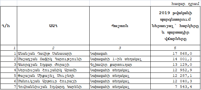 ՊԵԿ 7 բարձրաստիճան պաշտոնյաները և նրանց 9 խորհրդականները, օգնականները և տեղակալները միասին, ընդհանուր՝ 16 հոգի, 2019 թ․-ի ընթացքում ստացել են 139 մլն դրամ պարգևավճար, միջին ամսական պարգևատրումը՝ 723 հազար դրամ։