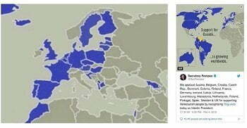 GIF-անիմացիայի վրա քարտեզ է, որի վրա առանձնացված են Վենեսուելայի ընդդիմության առաջնորդ Խուան Գուաիդոյին աջակցող երկրները: Պոմպեոն երախտագիտություն է հայտնել այդ երկրներին իր խոսքով «նախագահ Գուաիդոյին» սատարելու համար: