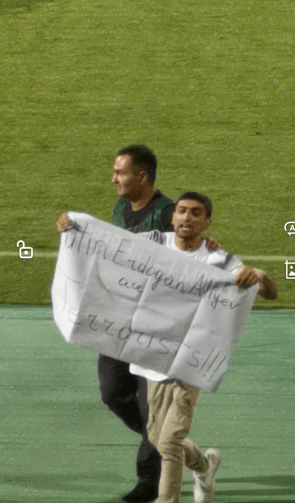 Երկրորդ խաղակեսի սկզբում մի խումբ երկրպագուներ պաստառները պարզած մտել են խաղադաշտ, որոնց վրա գրված է եղել «Աղավնոն չենք հանձնելու», Putin, Erdogan, Aliyev are terrorists, Ազատություն Սասնա Ծռերին: