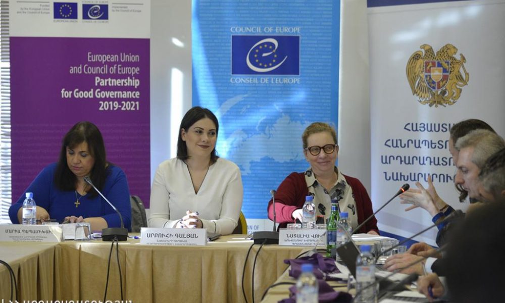 Փոխնախարար Գալյանը ողջունել է քննարկման մասնակիցներին և շնորհակալություն հայտնել ԵԽի երևանյան գրասենյակին և Եվրոպական միությանը՝ ատելության խոսքի, դրա սահմանների ուրվագծման և համարժեք պատասխանատվության սահմանման խնդիրների վերհանման նպատակով կազմակերպած հանդիպման և ցուցաբերած մշտական աջակցության համար: