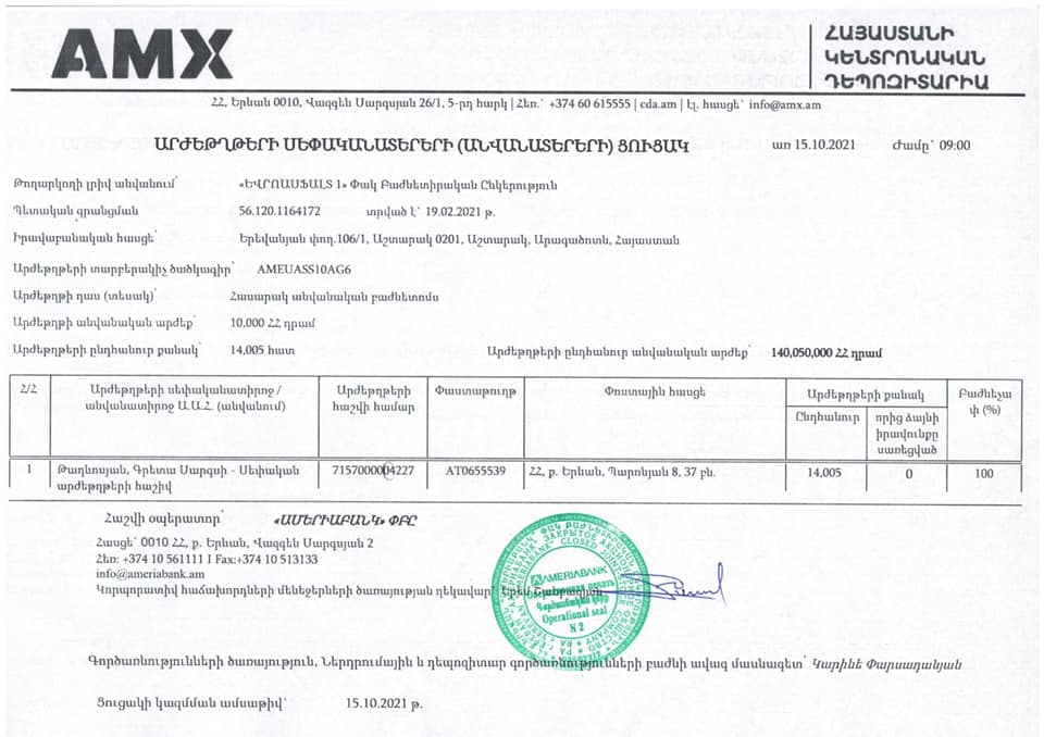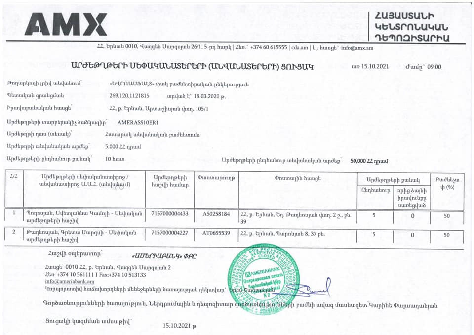 Հաշվի առնելով վերոգրյալը՝ կոչ ենք անում զերծ մնալ անտեղի շահարկումներից և ընկերության բարի համբավի վերաբերյալ ոտնձգություններից: Օրենքի խախտման կասկածների դեպքում կոչ ենք անում դիմել իրավապահ մարմիններին: Ընկերությունն իր հերթին պատրաստ է տրամադրել ցանկացած տեղեկատվություն», – ասված է ընկերության հայտարարության մեջ: