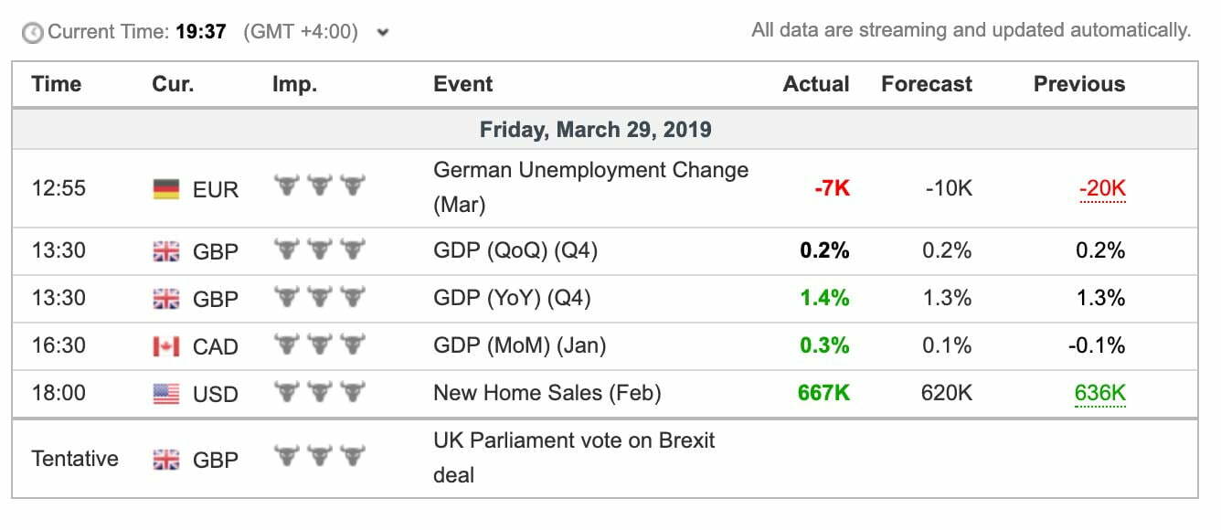 Հրապարակվել է Մեծ Բրիտանիայի ՀՆԱ–ն 2018 թվականի չորրորդ եռամսյակի ցուցանիշների փոփոխությունը, համեմատած նախորդ եռամսյակին, ըստ որի այն կազմել է՝ 0.2%, ինչը համապատասխանում է թե՛ կանխատեսմանը, թե՛ նախորդ ժամանակահատվածի ցուցանիշին։ Ինչպես նաև հրապարակվել է նախորդ 2018 թվականի ցուցանիշը, որը եղել է 1.4%՝ կանխատեսումից և նախորդ ժամանակահատվածից ավել 0.1%-ով։