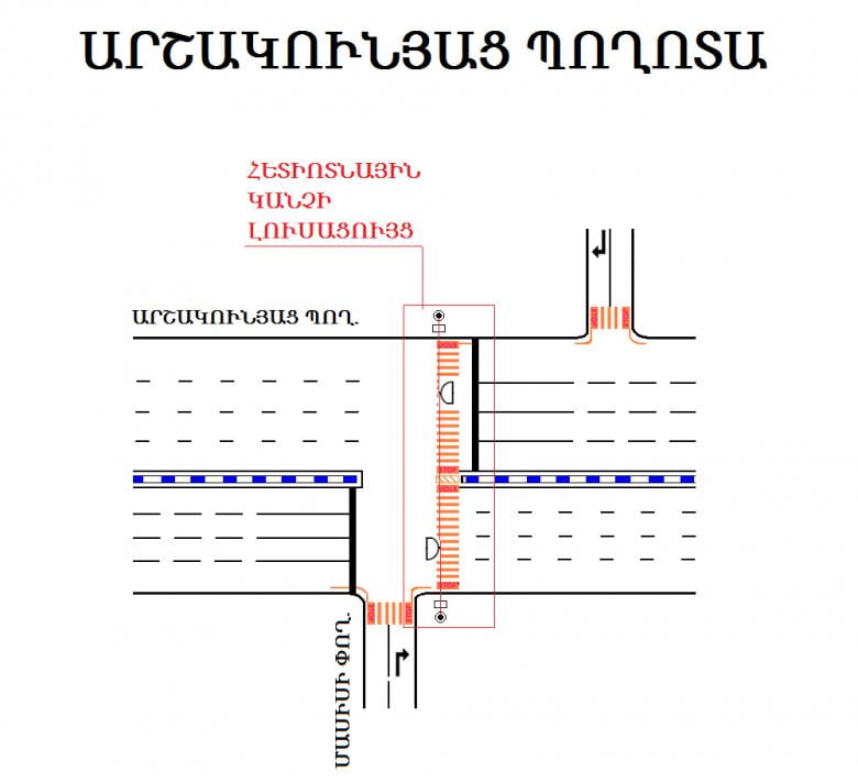 Փոփոխության արդյունքում Արշակունյաց պողոտայի նշված հետիոտնային անցման հատվածում կտեղակայվի «հետիոտնային կանչի» ռեժիմով աշխատող լուսացուցային օբյեկտ և այսուհետ տվյալ ճանապարհահատվածով տրանսպորտային միջոցների երթևեկության ու հետիոտնային անցումով հետիոտների տեղաշարժի հերթականությունը հետիոտների միջամտությամբ կկարգավորվի լուսացույցի ազդանշաններով: