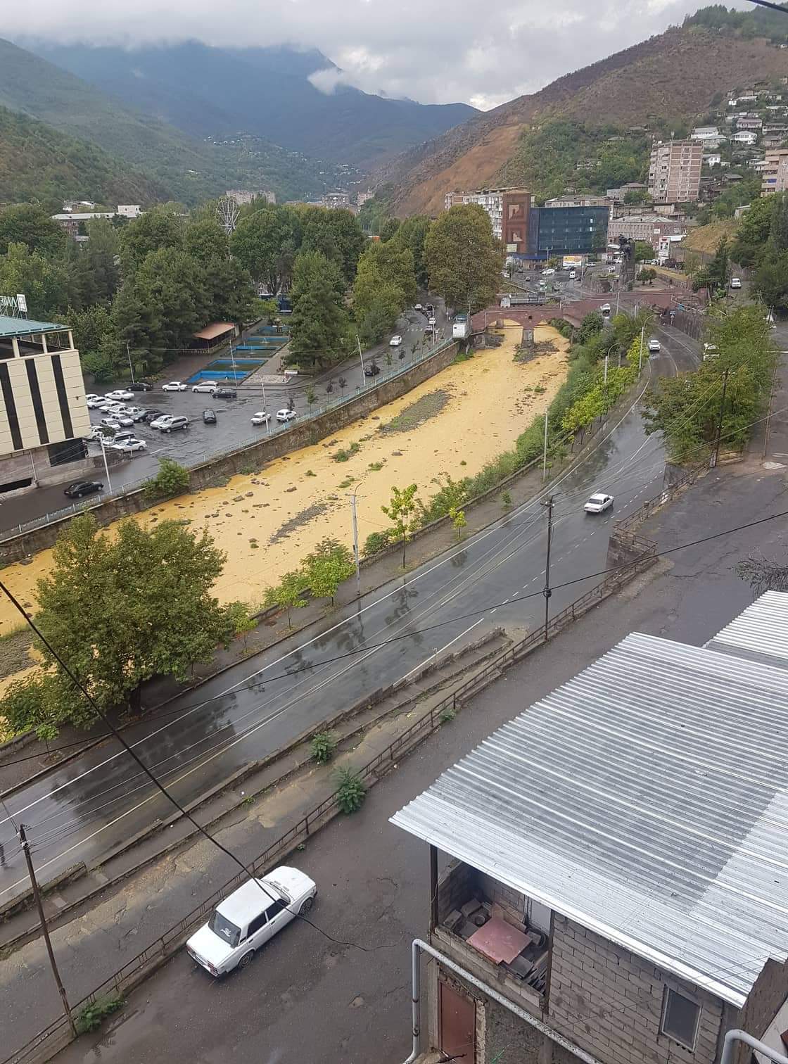 Անձրևից հետո ահա այսպիսի գույն ունի Սյունիքի մարզկենտրոն Կապանի միջով հոսող Ողջի գետը։