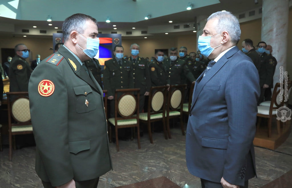 Նախքան օրակարգային հարցերին անցնելը՝ ՀՀ պաշտպանության նախարար Վաղարշակ Հարությունյանը ներկայացրել է ՀՀ ԶՈՒ ԳՇ պետի նորանշանակ առաջին տեղակալ, գեներալ-մայոր Արշակ Կարապետյանին: Բարձր գնահատելով նրա մասնագիտական գիտելիքները, փորձն ու ծառայողական ուղին զինված ուժերում՝ պաշտպանական գերատեսչության ղեկավարը Արշակ Կարապետյանին կարևոր այս պաշտոնում մաղթել է արդյունավետ աշխատանք և հաջողություններ: